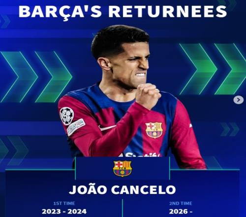 体育播报1月14日宣 巴萨已经官宣租借引进利雅得新月边后卫坎塞洛,《转会市场》也列出了多位先后2次效力巴萨的球员。