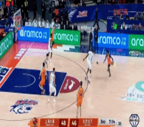 川队半场12分4板2助2断,杰曼11分3板4助,全队除了范子铭外人人都有得分,北京凭借节末一波12-3,单节轰下33分,半场北京46-40反超上海,相当不可思议,许利民自己也看乐了。