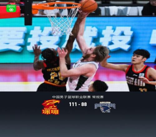第四节深圳武子涵拿下10分,同曦杰伦-汉斯拿下8分,最终深圳111-88战胜同曦